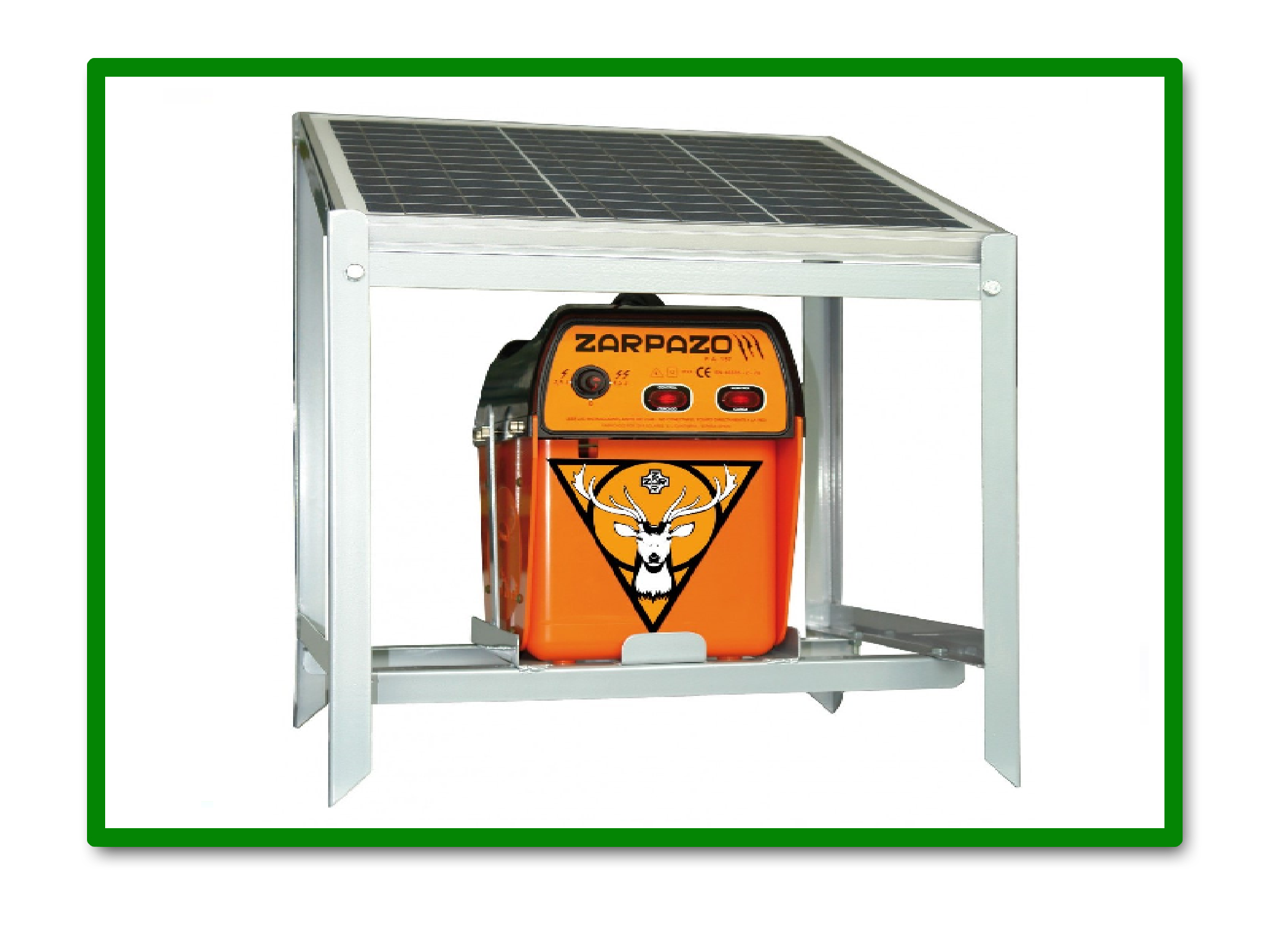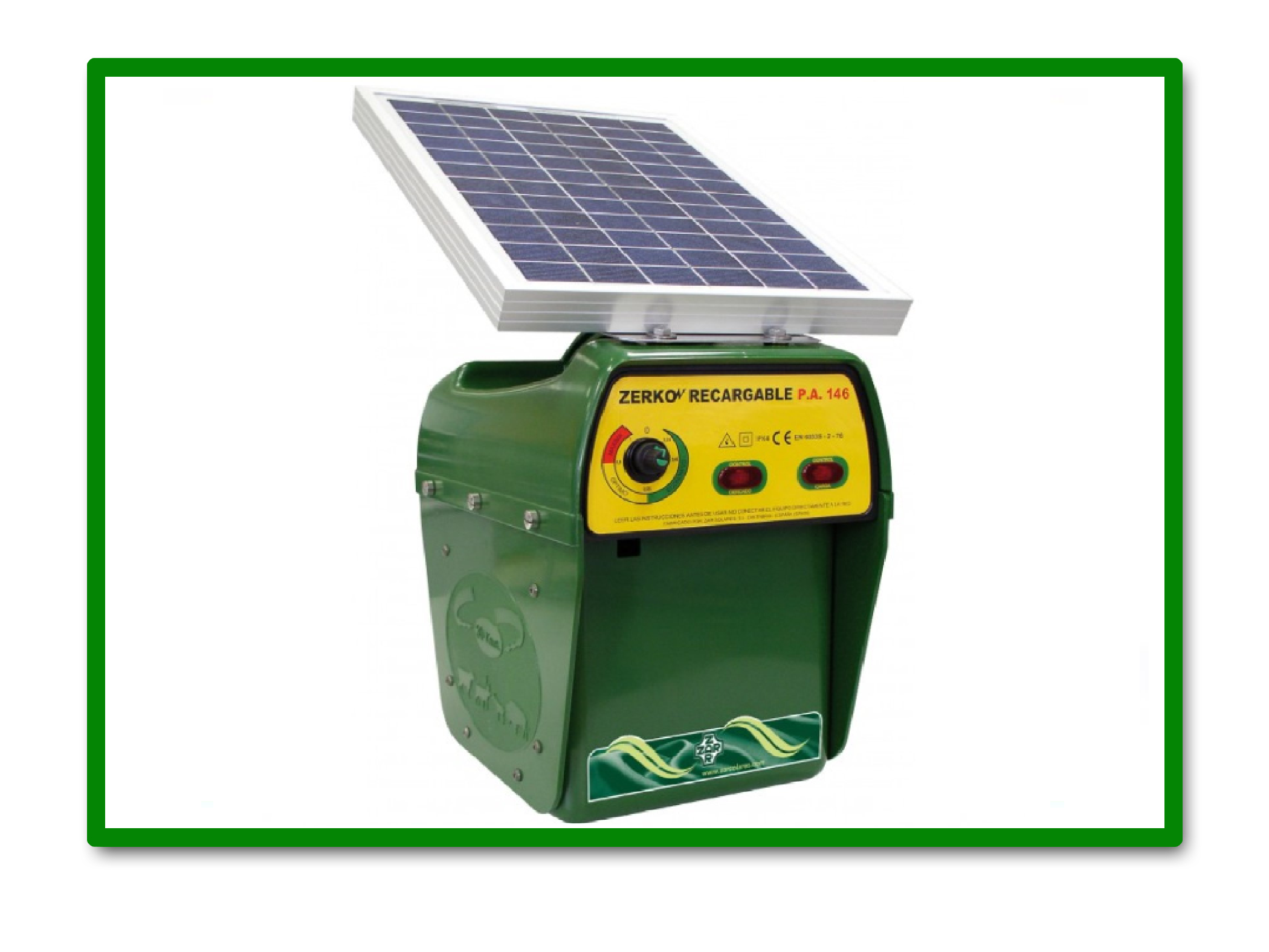 Electrificador potente a batería 12 v.interior y panel solar 25 W. monocristalino , recomendado para instalaciones de cercas largas donde se necesita alta potencia y no se dispone de energía eléctrica.